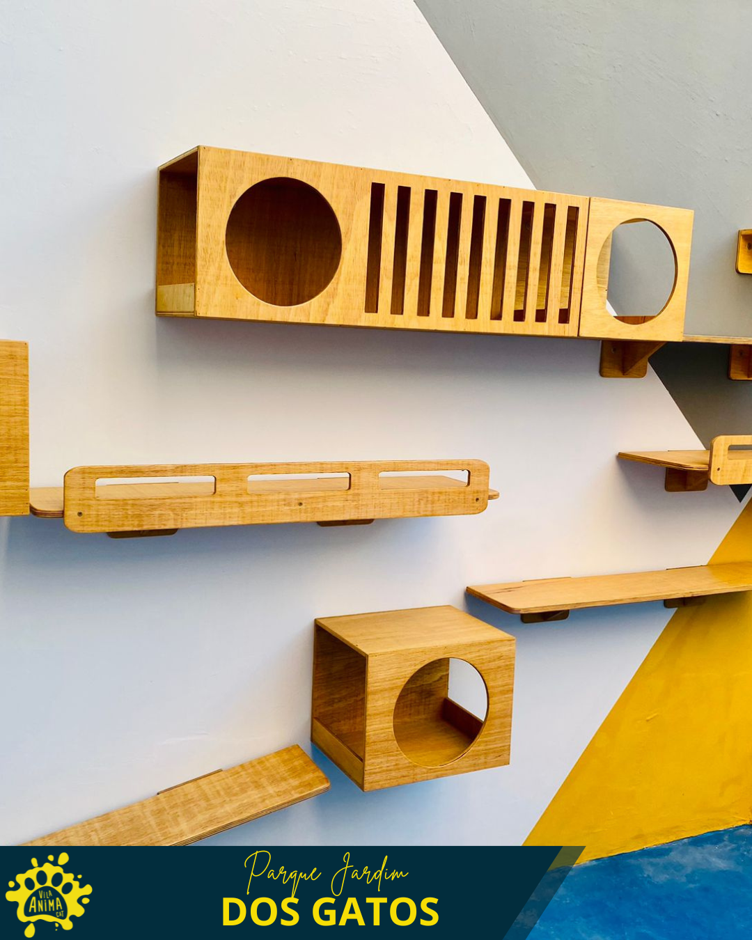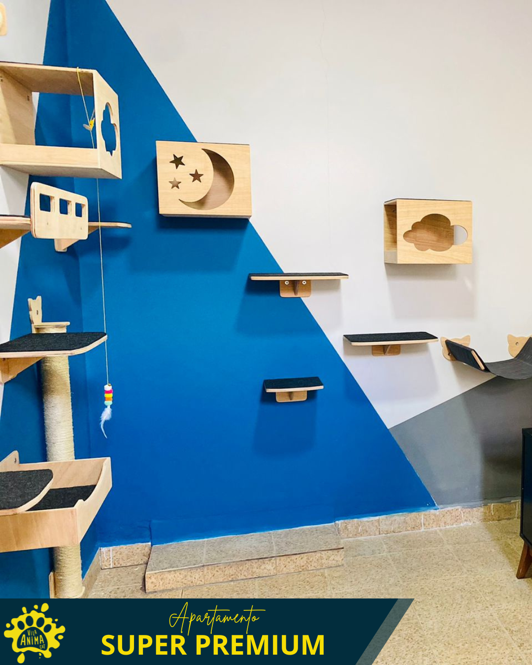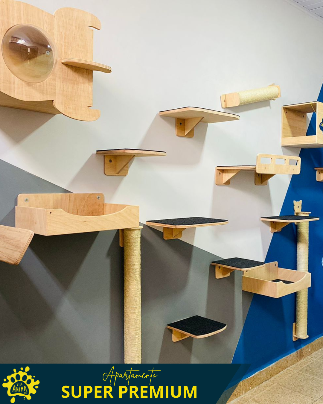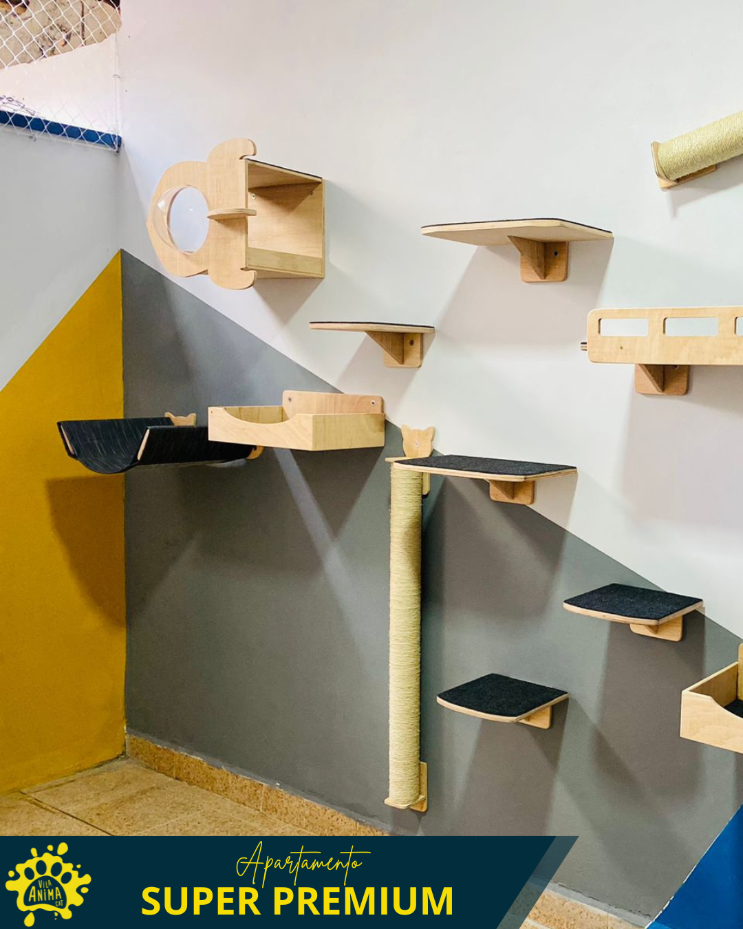 Com apartamentos cuidadosamente projetados e equipados para o seu gatinho, o VILA ANIMA CAT conta também com 3 áreas de playgraounds externos super gatificadas onde os hóspedes têm acesso para brincar, tomar sol, conhecer novos espaços e explorar verticalmente. Mas pode ficar tranquilo: todas as áreas são protegidas, teladas e sem nenhum acesso à rua. SEGURANÇA aqui é prioridade número um!